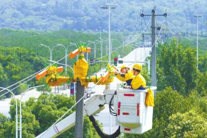6月12日,国网广元供电公司员工冒着高温开展10千伏上东线延伸工程施工作业。张超 摄国网绵阳供电公司员工通过不停电作业方式对10千伏祥工二线进行检修作业。 田海 摄国网四川电力(广元)连心桥共产党员服务队队员在四川广荣铝业有限公司讲解夏季分时电价政策。张超 摄国网四川电力(眉山江口)连心桥共产党员服务队队员在雷雷果业公司对选果设备进行安全用电检查,助力柑橘产业发展。 李红燕 摄
