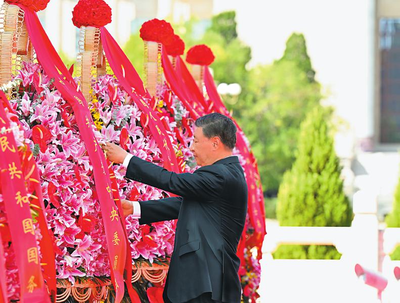 九月三十日上午,党和国家领导人习近平、李强、赵乐际、王沪宁、蔡奇、丁薛祥、李希、韩正等来到北京天安门广场,出席烈士纪念日向人民英雄敬献花篮仪式。这是习近平整理花篮上的缎带。新华社记者殷博古摄九月三十日上午,党和国家领导人习近平、李强、赵乐际、王沪宁、蔡奇、丁薛祥、李希、韩正等来到北京天安门广场,出席烈士纪念日向人民英雄敬献花篮仪式。新华社记者申宏摄