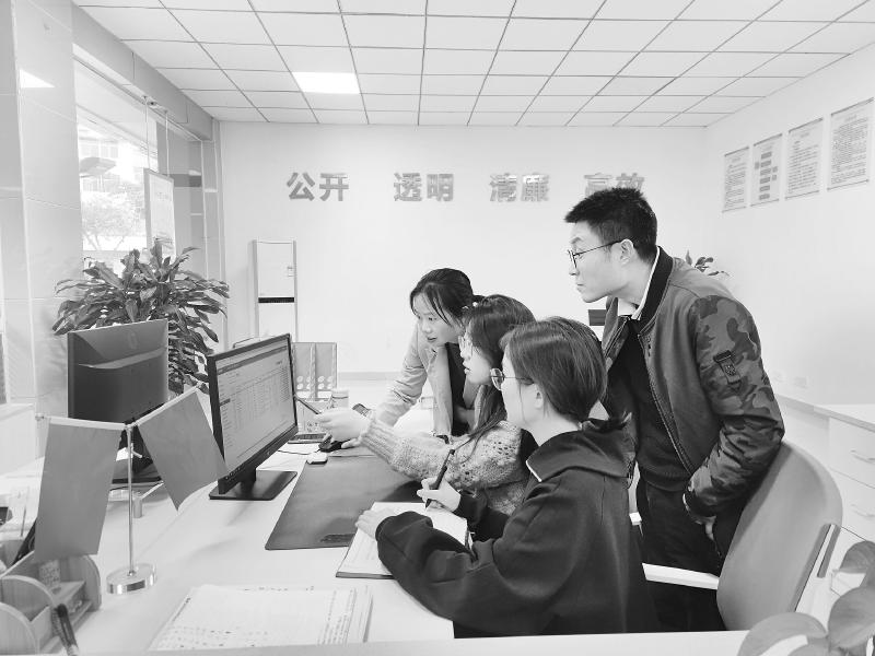 罗江区纪检干部分析研判大额村级账单情况。