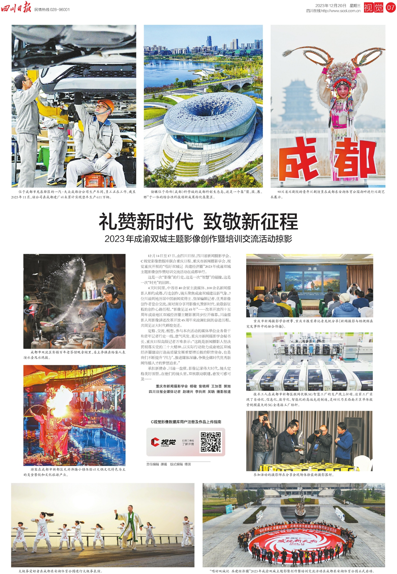 12月14日至17日,由四川日报、四川省新闻摄影学会、C视觉影像数据库联合重庆日报、重庆市新闻摄影学会、视觉重庆开展的“唱好双城记 共建经济圈”2023年成渝双城主题影像创作暨培训交流活动在成都举行。