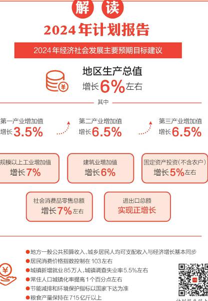 1月22日,省十四届人大二次会议在成都开幕。省发展改革委作了《关于四川省2023年国民经济和社会发展计划执行情况及2024年计划草案的报告》(以下简称《计划报告》),提出2024年度各项计划安排建议,其中包括地区生产总值增长6%左右的预期目标建议等。