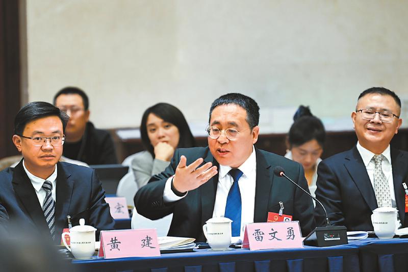 •   1月22日下午,雷文勇代表(中)建议,加大科技创新力度,特别是在农业科技方面助推更多科技成果加速转化。 四川日报全媒体记者 杨树 摄