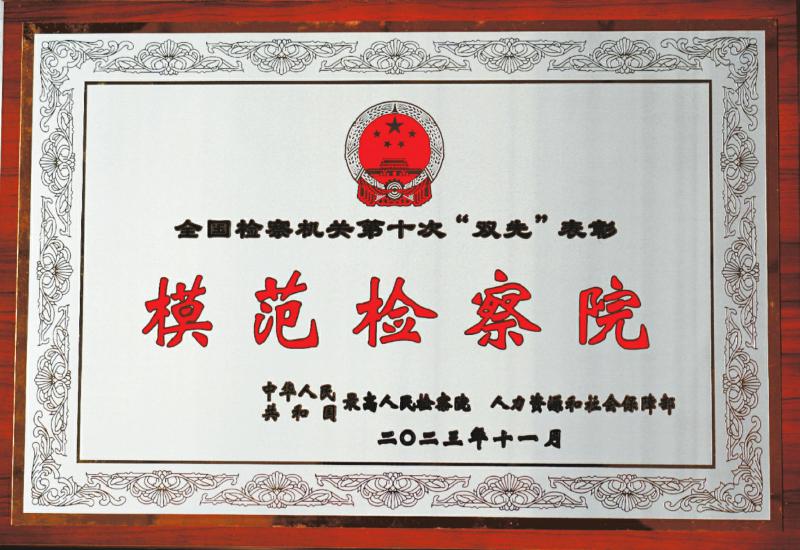 2023年12月20日,全国检察机关队伍建设工作会议暨第十次“双先”表彰大会在京召开,雅安市名山区检察院荣获“全国模范检察院”。