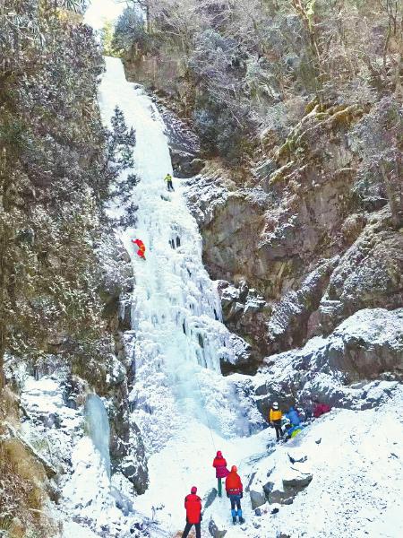 冰雪运动爱好者在四姑娘山攀冰。 扎西 摄