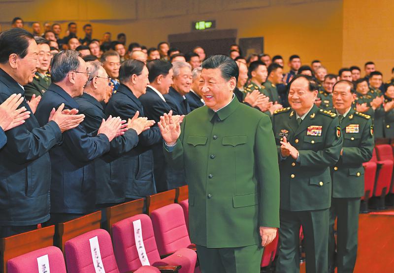 下午4时许,习近平来到老同志中间,全场响起热烈掌声。习近平关切询问他们的身体和生活情况,共同回顾在党的二十大精神指引下,过去一年来党、国家、军队事业取得的重大成就。老同志们一致表示,要更加紧密地团结在以习近平同志为核心的党中央周围,坚持以习近平新时代中国特色社会主义思想为指导,深入贯彻习近平强军思想,深刻领悟“两个确立”的决定性意义,增强“四个意识”、坚定“四个自信”、做到“两个维护”,贯彻军委主席负责制,坚定信心,振奋精神,团结奋进,为打好实现建军一百年奋斗目标攻坚战,为以中国式现代化全面推进强国建设、民族复兴伟业作出新的贡献。