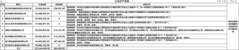 根据中国长城资产管理股份有限公司四川省分公司(以下简称“长城资产”)与四川琪富企业管理有限公司(以下简称“四川琪富”)签署的《债权转让协议》,长城资产已将其对下述《公告资产清单》所列债务人及担保人享有的主债权及借款合同、担保合同、抵债协议、还款协议和其他相关协议项下的全部权益依法转让给四川琪富。长城资产与四川琪富现联合公告通知各债务人、担保人以及其他相关各方上述债权资产转让事宜,并通知以下事项: