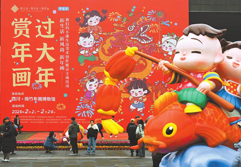2月2日,几十件龙年生肖年画作品亮相德阳绵竹市2024年“新生活·新风尚·新年画”——我们的小康生活美术创作展示主场活动。