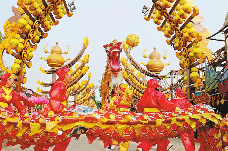 2月13日,泸州市纳溪区在“山河明月·醉酒城”特色街区举行舞龙贺新春活动,为游客送上新春的祝福。 廖胜春 摄(C视觉)