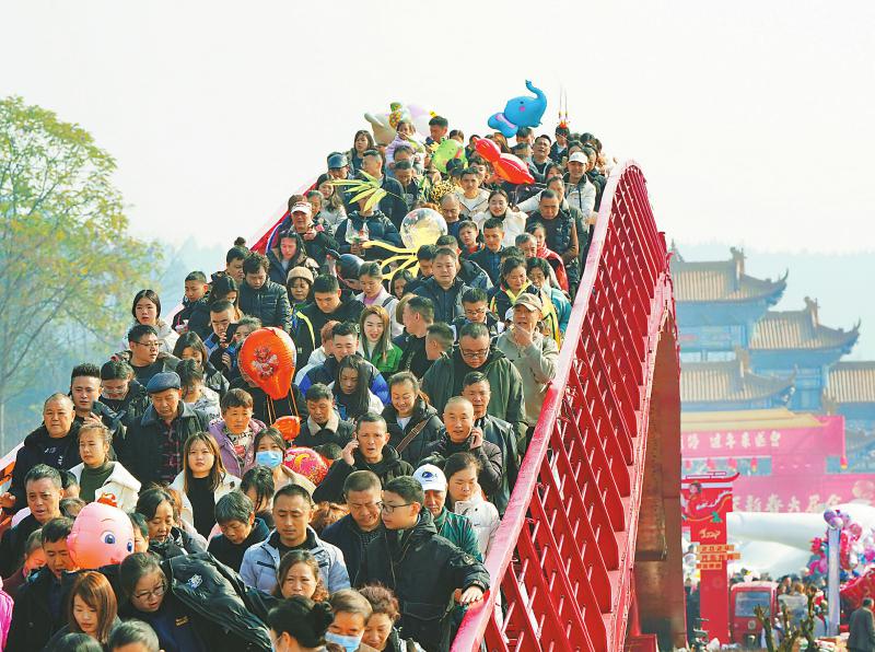 2月10日,市民游客来到遂宁灵泉景区,在新春大庙会里赏民俗、庆新年。