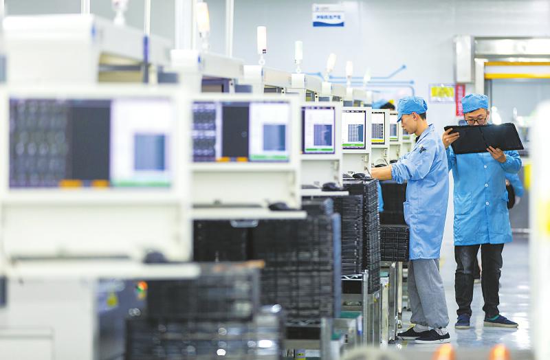 2月17日,遂宁市四川上达电子有限公司的生产车间内,工人在加紧生产柔性线路板,全力以赴拼经济搞建设,争取一季度开门红。