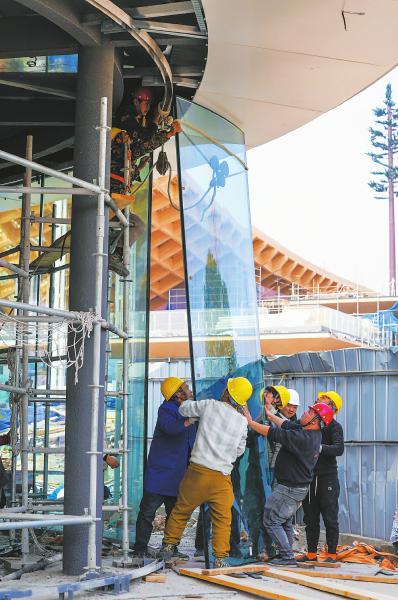 2月11日,成都世界园艺博览会建设现场,近百名一线作业人员坚守施工一线,加快推进园区建设。