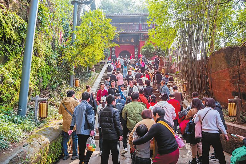 数据显示,8天春节假期里,乐山开放的39家A级旅游景区共接待游客247.46万人次、实现门票收入5894.85万元,同比分别增长37.40%、41.85%。旅游业消费旺盛,还在于乐山酒店住宿、交通运输、美食餐饮等领域拉动涉旅消费超50亿元,同比增长超39%。