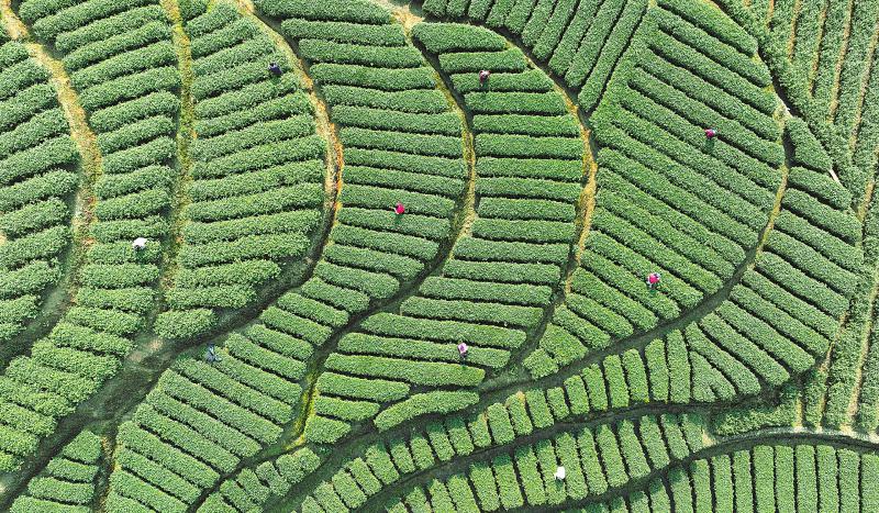 2月19日,泸州市纳溪区护国镇梅岭村特早茶基地,茶农们抢抓雨水时节采摘春茶。 王超明 摄(C视觉)