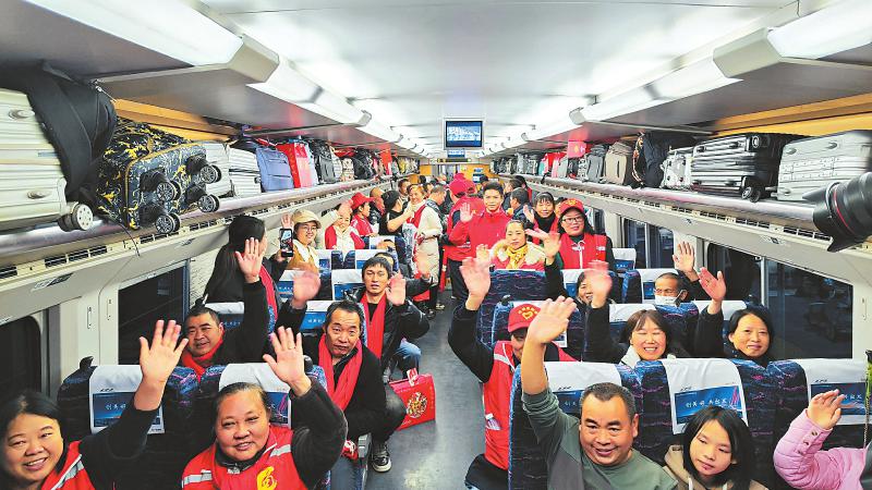 这趟列车是由四川省人力资源和社会保障厅、广东省人力资源和社会保障厅共同组织的2024年春节后首趟省际劳务协作返岗专列,依次在绵阳站、德阳站、成都东站、宜宾西站停靠,为600余名川籍农民工赴粤返岗务工提供免费车票。在这趟返岗专列上,流动着怎样的故事?四川老乡有哪些新年愿望?