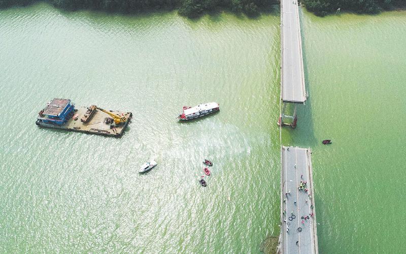 ●事故造成4辆车和1辆电动摩托车从断裂处坠落,5人死亡