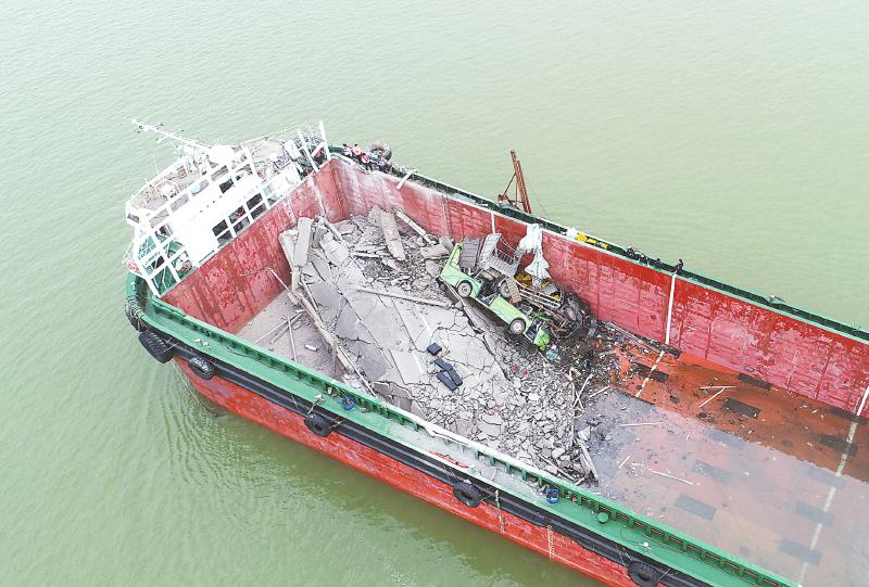 广州市交通运输局总工程师邹小江介绍,被撞受损的沥心沙大桥19号桥墩倾斜严重,存在进一步失稳风险。为避免发生次生灾害,需进一步拆除19号至20号桥墩跨梁,消除安全隐患。