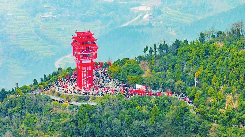 正月初九一早,整个达州城区都喧闹起来。人们扶老携幼、三五成群,在欢声笑语中朝登高的目标进发。