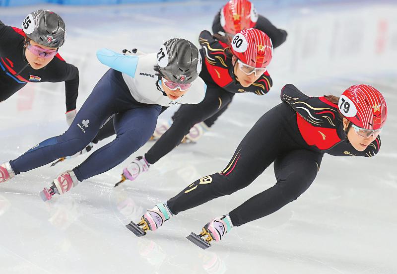 2月18日,四川队选手在女子1000米短道速滑比赛中。