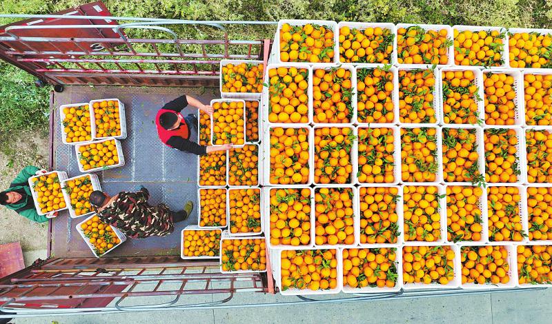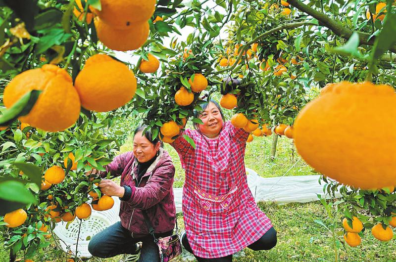 2月28日,在眉山市仁寿县板桥镇团圆社区,村民正在采摘“不知火”。板桥镇的“不知火”喜获丰收,连日来,果农们忙着采摘、分拣、装运,销往市场。 潘建勇 摄(C视觉)