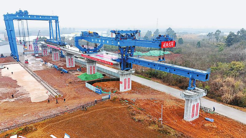 成渝中线高铁的桥梁建设投入多种智能化设备,运梁车采用北斗系统导航,司机一个人就能完成安全运输;箱梁预制集设计模块化、施工生产工厂化、管理手段信息化等于一体,实现全流程智能化生产。截至目前,成渝中线高铁四川段各标段项目部、分部驻地及中心实验室全部建成投用,梁场、板厂、管片厂、拌合站等大型临时设施建设正有序推进。首孔箱梁成功架设后,项目进入桥梁上部结构建设阶段,为后续施工奠定坚实基础。