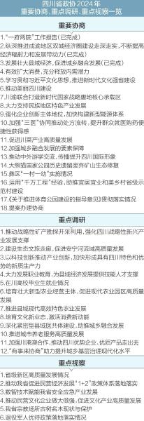 本报讯(四川日报全媒体记者 陈婷)近日,《政协四川省委员会2024年工作要点》正式印发。《要点》紧紧围绕“四化同步、城乡融合、五区共兴”发展战略实施,提出省政协今年五个方面工作任务,并明确62项重点工作。