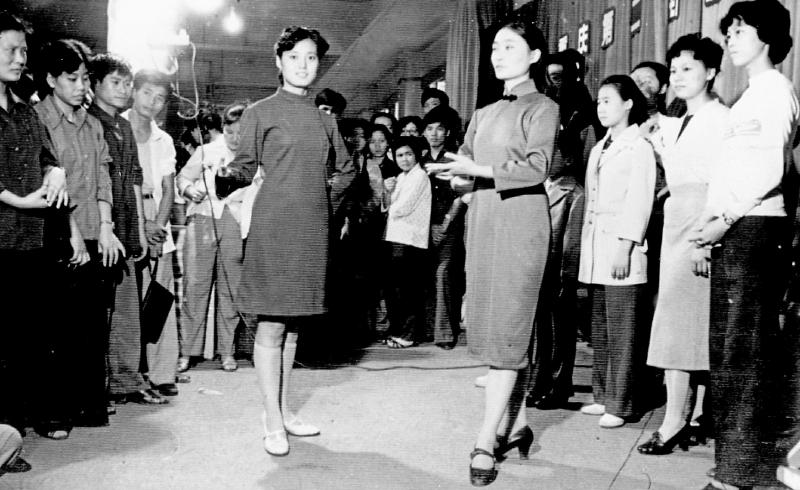 T 台走秀 1979年,“时装模特”的概念进入中国。20世纪80年代初,重庆针织公司的模特在展示当年的新款服装。