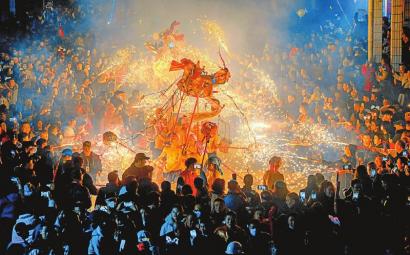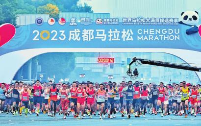 乐加火龙 绵阳三台县乐加火龙闹元宵。烧火龙是当地传统民俗,老百姓认为烟火燃得越旺,来年的日子就越红火。江边“起飞” 重庆梁沱冬泳义务救援基地,游泳爱好者在练习跳水。裸眼3D 成都太古里路口的裸眼3D大屏,吸引全国各地游客来此打卡。防空洞火锅 重庆胡家岩文旅小镇的地下火锅店,占地面积4500平方米,能摆放208张餐桌,是目前重庆最大的地下火锅店。成马开跑 2023年10月29日,2023成都马拉松鸣枪起跑,来自全球的35000名跑者共享公园城市魅力。
