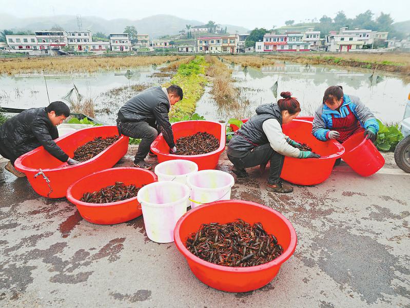 兴文县春季回暖早,小龙虾上市时间比湖北、江苏等产区提前约两个月,甚至可端上年夜饭餐桌,赶了“物以稀为贵”的好时机。
