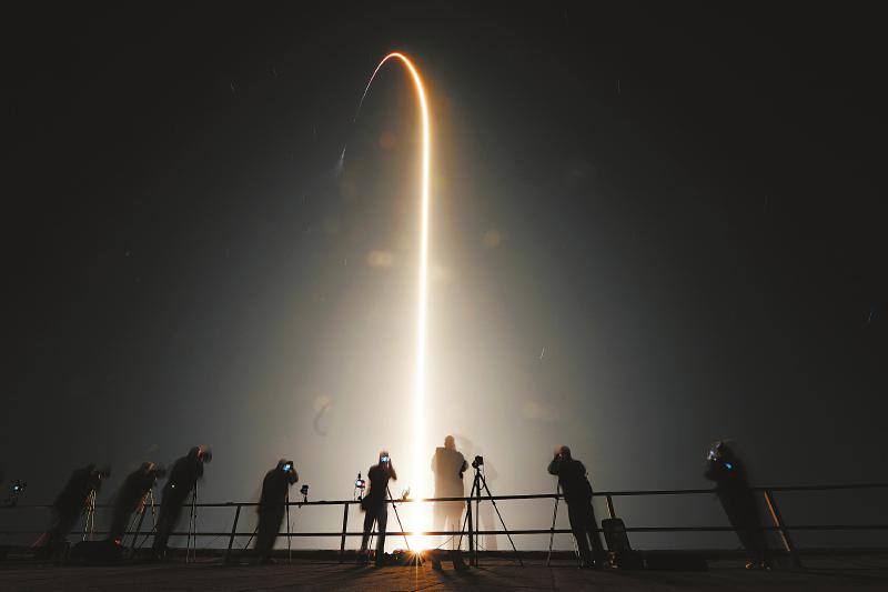 影像志 “龙”飞船飞赴国际空间站 这是3月3日在美国佛罗里达州肯尼迪航天中心拍摄的搭载了“龙”飞船的“猎鹰9”火箭发射升空的景象(长时间曝光)。 美国太空探索技术公司的“龙”飞船当地时间3月3日晚从佛罗里达州发射升空,搭载美俄4名宇航员飞往国际空间站。