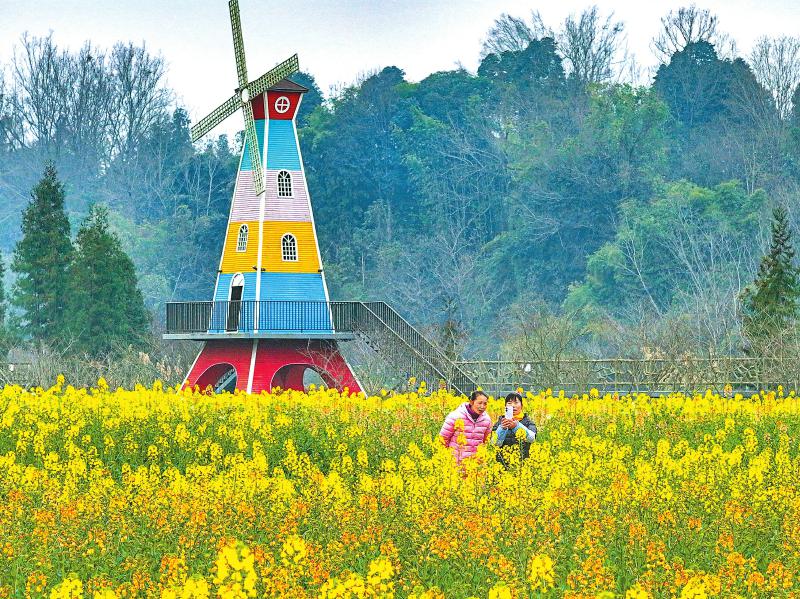初春时节,雅安各地油菜花相继绽放。近日,芦山县万亩粮经复合园粮油(思延)示范基地内,赏花踏青的游客络绎不绝。 雅安观察 黄刚 摄