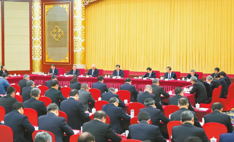 中共中央政治局常委、全国政协主席王沪宁,中共中央政治局常委、中央办公厅主任蔡奇参加看望和讨论。