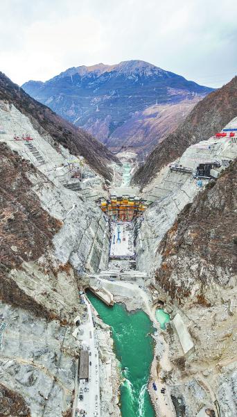 近日,位于四川白玉县与西藏贡觉县交界的金沙江上游干流之上的叶巴滩水电站建设正酣。叶巴滩水电站是国内在建最高双曲拱坝工程,总装机容量244万千瓦,是金沙江上游最大水电站,预计2025年底具备首台机组发电条件。 洛绒尼玛 摄(C视觉)