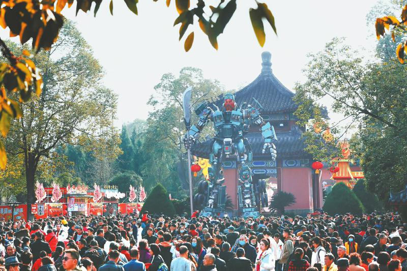 2024年春节期间,成都武侯祠博物馆恢复了成都大庙会,主题灯展、仿古祭祀、游喜神方等活动,让观众在触摸三国文化之外还充分感受地道成都年味;成都杜甫草堂的诗圣文化节、广汉三星堆博物馆的新年大典以及成都金沙遗址博物馆的太阳节,通过深入挖掘博物馆自身特点打造特色文化活动,吸引着有不同兴趣爱好的目标人群;四川博物院、自贡盐业历史博物馆等多家博物馆邀请专业人员表演舞龙巡游以及非遗活动,增加节日氛围……有创新、有年味的活动助力百姓欢欢喜喜过大年,也展示出中国传统文化的博大精深。