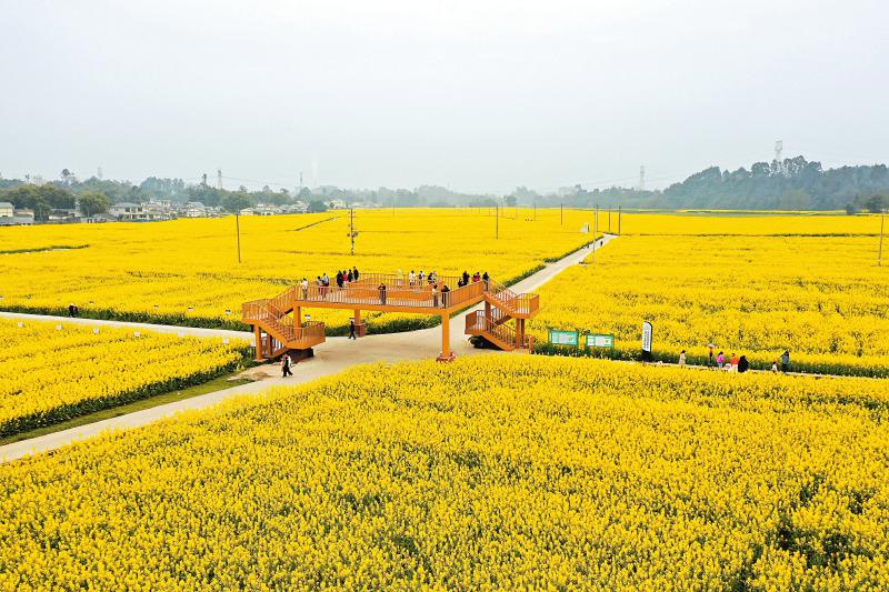 早春时节,四川各地油菜花次第开放,扮靓了村庄田野。田园春景吸引不少游客前来赏花踏青,助力当地旅游业发展,为农民拓宽了增收渠道。