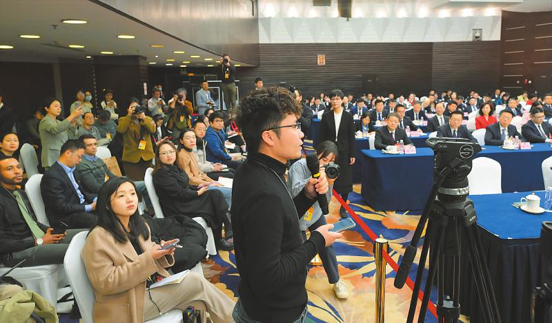 3月10日上午,十四届全国人大二次会议四川代表团举行全体会议,并向中外媒体开放。来自人民日报、新华社、中央广播电视总台、日本共同社、彭博社、俄罗斯金砖电视台等89家境内外媒体的156名记者,来到会场旁听代表审议发言,在记者提问环节踊跃提问。