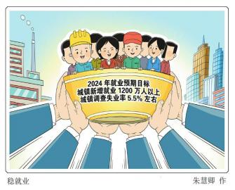 城镇新增就业1200万人以上,城镇调查失业率5.5%左右——3月5日提请审议的政府工作报告提出2024年更加积极的就业目标,传递出更大力度稳就业、强信心的信号,那就是稳住就业大盘。 朱慧卿 图