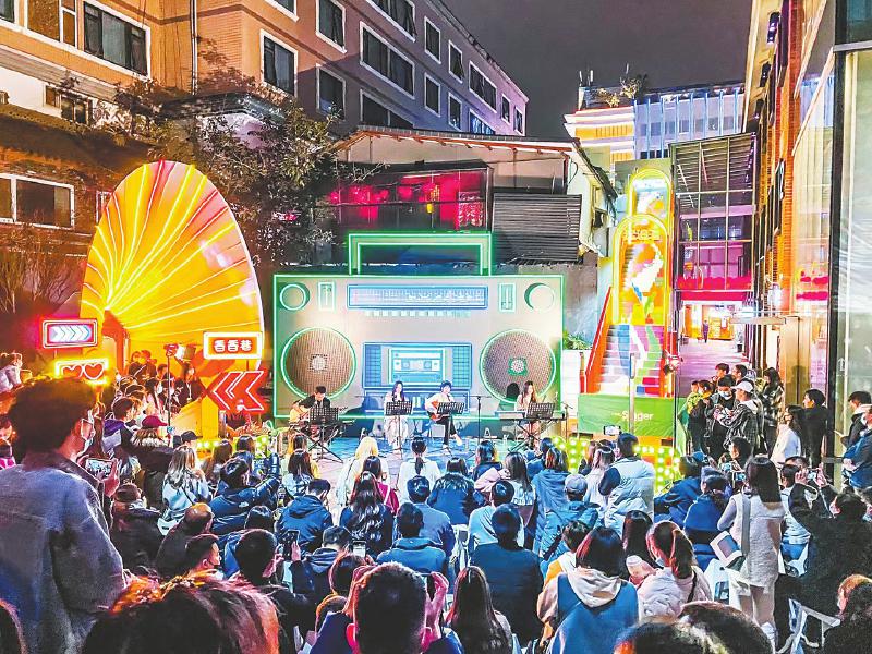 •   蓉城夜色中,街头音乐会吸引许多市民和游客驻足。成都市成华区文体旅局供图