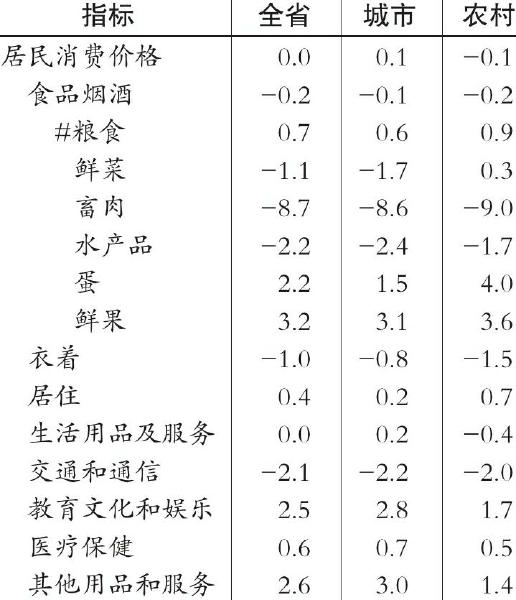 全年居民消费价格与上年持平,其中,医疗保健类上涨0.6%,居住类上涨0.4%,教育文化和娱乐类上涨2.5%,食品烟酒类下降0.2%。工业生产者出厂价格比上年下降2.4%,其中生产资料价格下降3.0%,生活资料价格下降0.6%;工业生产者购进价格比上年下降2.9%。