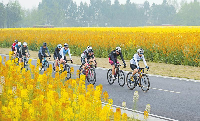 3月15至16日,成都天府绿道国际自行车车迷健身节(新津站)比赛举行,来自全国各地的自行车车迷穿行在五彩油菜花田中,体验骑行健身的快乐。 祝纯健 摄(C视觉)