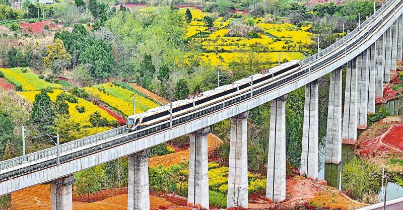3月17日,一辆电客车平稳通过成都轨道交通资阳线最后一段岔道,标志着成都轨道交通资阳线圆满通过接触网热滑试验,四川首条跨市域轨道交通线路全线测试首跑。 成都轨道交通资阳线全长约39公里,是首条连接成都天府国际机场、天府国际空港新城和资阳市的轨道交通快线。该线路以成都地铁18号线福田站为起点,新建一座临空车辆段和5座车站。该线路建成后,将作为串联成都和资阳之间的重要经济走廊、重点产业协作带和重大铁路航空枢纽,推动成都、资阳同城化迈入“轨道同城”时代。蒋显正 四川日报全媒体记者 李向雨 摄
