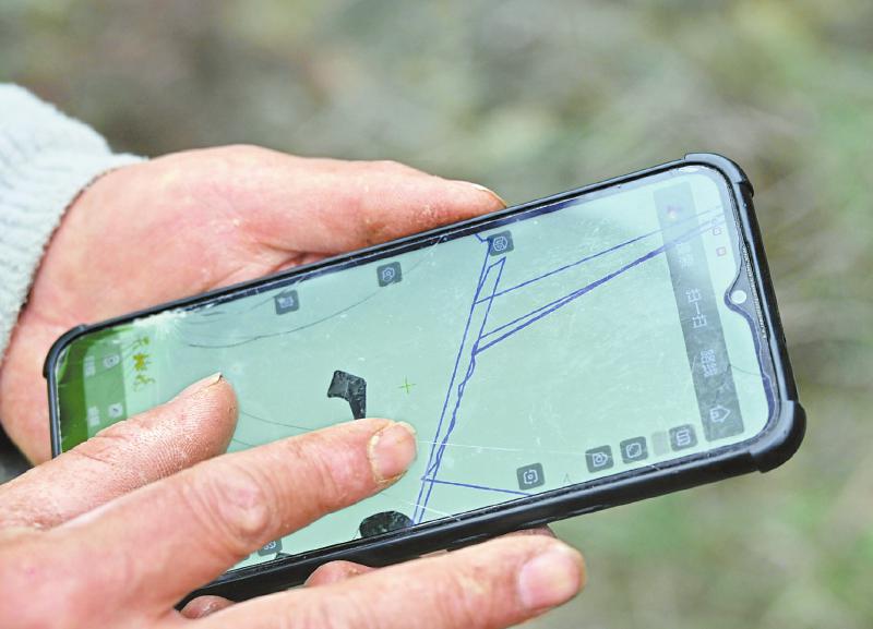 3月8日,护林员通过手机地图定位植树的位置。