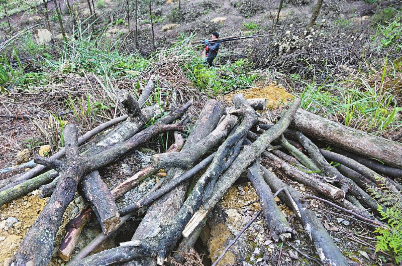 2023年12月8日,古蔺县太平镇走马村的病死松树已被砍下,护林员准备栽种新的树苗。