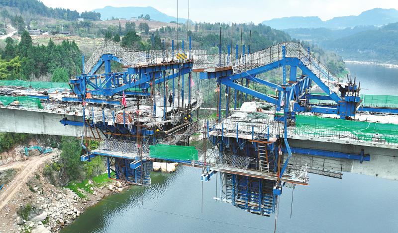 近日,在通江县铁佛镇黄嘴头渡口,黄嘴头渡改桥项目正在施工建设。该项目预计4月10日完成连续梁合龙,5月竣工后将改变两岸居民靠渡船出行的历史。杜文龙 摄