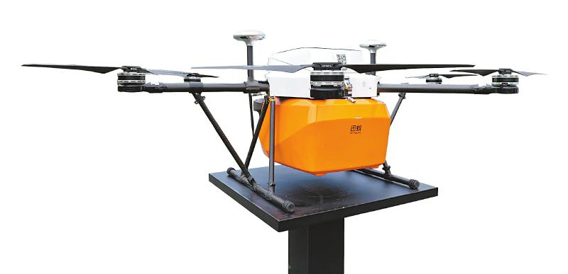 “这架就是目前专门用于外卖配送的无人机。”四川翔彭智航副总经理万瑶指着其中一架无人机告诉记者。记者注意到,与其他几架无人机相比,这架无人机体积明显偏小,展开的机翼和机身下,有一个用于装载物品的橙色盒子。