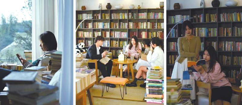 有了建筑,如何让空间活起来?富有趣味的活动自然少不了。刘长青喜欢藏书,自己的藏书就达3万余册。为此,他联合新都区图书馆,把乡村图书馆搬进青荣艺术空间。如今这座图书馆分馆里面不仅有文学新书、杂志等,还有老书、古书和绝版书。“不少书迷喜欢来这里淘书。”刘长青说,图书馆的藏书类型也费了一番心思,“主要是艺术类和文学类。”他解释,这样的类别更对前来空间的人的“胃口”。图书馆被装修得如归家一般亲切,蒲团垫、沙发让人们可以自由坐躺,开启一段闲暇的阅读时光。