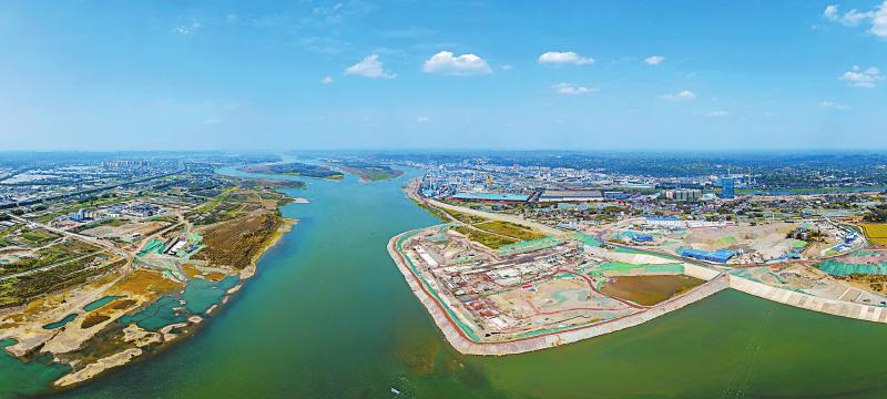 3月20日,岷江老木孔航电枢纽工程项目最重要的控制性工程——防渗墙建设和左岸800米近坝段防护工程全面完工,项目主体正加紧建设。5月底,一期工程将全面建成。章綦 摄(C视觉)