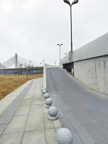 对此,何大学也认为,由于没有设置推行标志和相关减速装置,加上落地坡路面为光滑的石砖材质,市民无论是推行还是骑行都不方便。