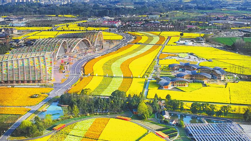 天府农博园的油菜花海集中体现了成都世园会新津分会场的鲜明特点——园艺展品兼具观赏性和实用性,不仅好看还能吃。
