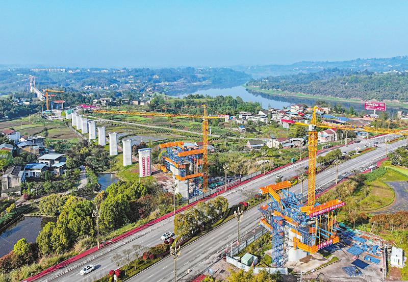 3月28日,中铁十局承建的广安华蓥市清溪口特大桥连续梁14号、15号广华大道跨墩完成底腹板钢筋绑扎,拟于近日进行浇筑,标志着西渝高铁站前十一标工程建设进入新阶段。 邱海鹰 摄(C视觉)
