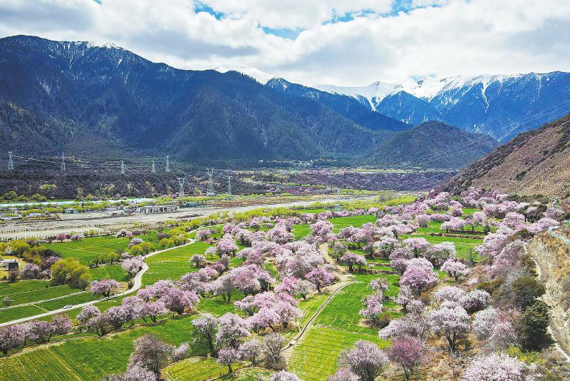 西藏林芝市巴宜区朵当村盛开的桃花(3月30日摄,无人机照片)。当日,林芝市第二十一届桃花旅游文化节开幕,各类活动精彩纷呈,吸引众多游客。 新华社记者 丁增尼达 摄
